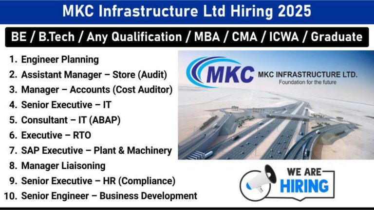 MKC Infrastructure Ltd Hiring 2025 | Civil Engineer Recruitment Gandhinagar Company Name MKC Infrastructure Ltd …