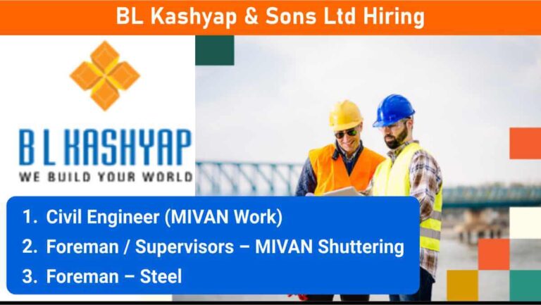 BL Kashyap & Sons Ltd Hiring | Experienced Civil Staff for High-Rise Commercial Projects Company …