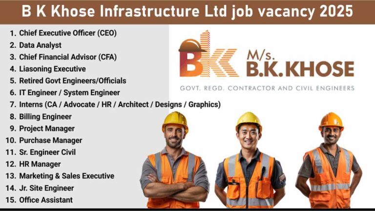 B K Khose Infrastructure Ltd job vacancy 2025 | Apply for Project Manager, CEO, Billing Engineer …