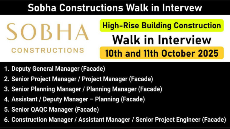 Sobha Constructions Walk in Intervew | Mumbai & Bangalore | Oct 2025 Company Name Sobha …